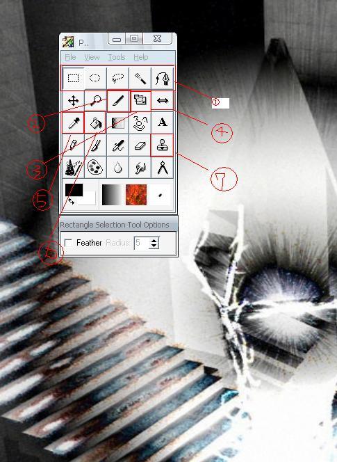 ①四角や円形、自分が加工したい部分を編集したりするツールです。